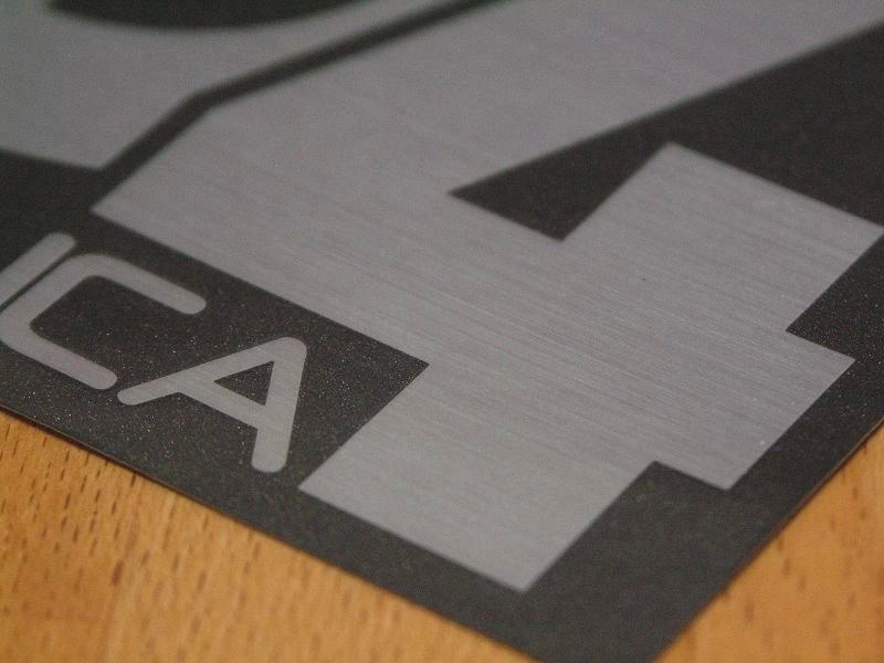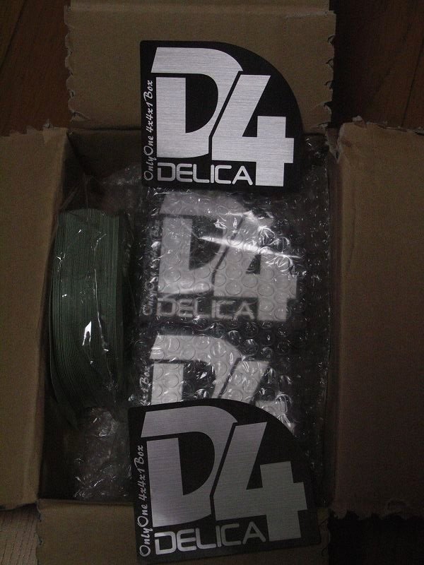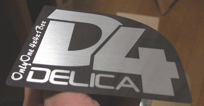 【重要なお知らせ等】 10.09.20 更新 9月20日を持って、新規の方の受注を終了します。 メンテ分のみ若干在庫あります。 尚、同ステッカーの今後の追加生産は予定しておりません。 09.9.15 更新 2009年9月14日、今まで、ほしい旨の意思表示いただいた方向けに注文の案内メールをお送りしました。 5名の方が不達で戻ってきました。10日以内に再送をお願いします。→ デリカBBS参照 ゆうちょの総合口座をお持ちの方はATMから無料でステッカー頒布料金を送金できますが、ゆうちょ銀行に口座が無い方は逆に高額となってしまう為、今回より一口、180円(郵送代含)で送金できる定額小為替(ていがくこがわせ)でも受付ます。定額小為替の内容についてはこちら→郵便定額小為替(ていがくこがわせ) 【お知らせ】08.1.26 更新 D4ステッカーですが、おかげさまで生産したステッカーはすべて終了しました。 4回目の追加生産をするか否かは今のところ未定です。 【連絡事項】 2008年1月26日まで受注頂いた方へはすべて発送は済ませております。 2008年1月26日までに予約された方すべての方に発注に関するメールを差し上げております。 当方よりのメールが不達で戻って来た方もおります。 ○畑様、二度メール頂きましたが、二度共メールをお送りしてもエラーで帰って来ます。 希望口数(二枚1セット)と住所氏名を書いてあらためてメールください。直接お送りします。 まだ届いていない方はケイタイ電話やPCのメール設定等をご確認の上再度メールをお願いします。 【重要なお知らせ等】07.4.5 改定 D4ステッカー2枚+切り文字ステッカー2枚(銀色)セットで1000円(送料込)とさせていただきます。 (従来、白色も選べましたが、殆どの方が銀色希望ですので当方の都合もあり、銀色のみとしました。) 切文字ステッカーの素材は3M社製の超耐候素材(11年)を使用しております。 (複数口注文された方は、まとめて発送しますので、余った送料分を切手にてお返しします。) 納品は受注後10日以内発送を予定しております。 従来どおりステッカーの頒布は メールで予約〜本発注 という形式となります。(ページ末リンク参照) 既に受領された方よりメールやBBSにてステッカーの感想が寄せられておりますが好評です。 貼ってみました。 とりあえず、バンパーと横にに当方は貼ってみました。 スペギの場合、前側はやはり貼るところがないですね〜。 前側に似合うステッカーも後日考えてみます。 ![]() ![]() ![]() 黒のメタリック色が見る角度によりガンメタっぽい色から黒へと変り、これは結構良い感じです。 ヘアラインも綺麗ですし、きっと皆様が手にとってご納得いただける品と確信しております。 少し画像を掲載します。(クリックすると拡大します。) 到着したステッカー、上のステッカーが正面から見た感じです。ベースは黒に見えます。 斜めから見るとこん色あいです。写真では表現しにくいです・・。 メタリックの感じを撮影したのですが・・やはり写真では表現しにくいですネ。 ![]() ![]() ![]() [上記画像含め当方のUPしたステッカー画像はWeb転載自由です。ブログ、BBS等で是非お披露目ください〜]